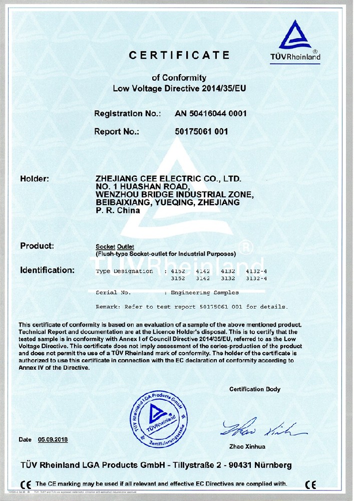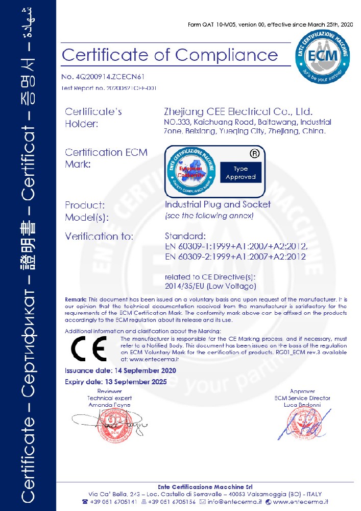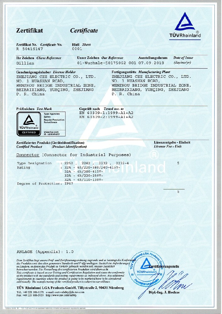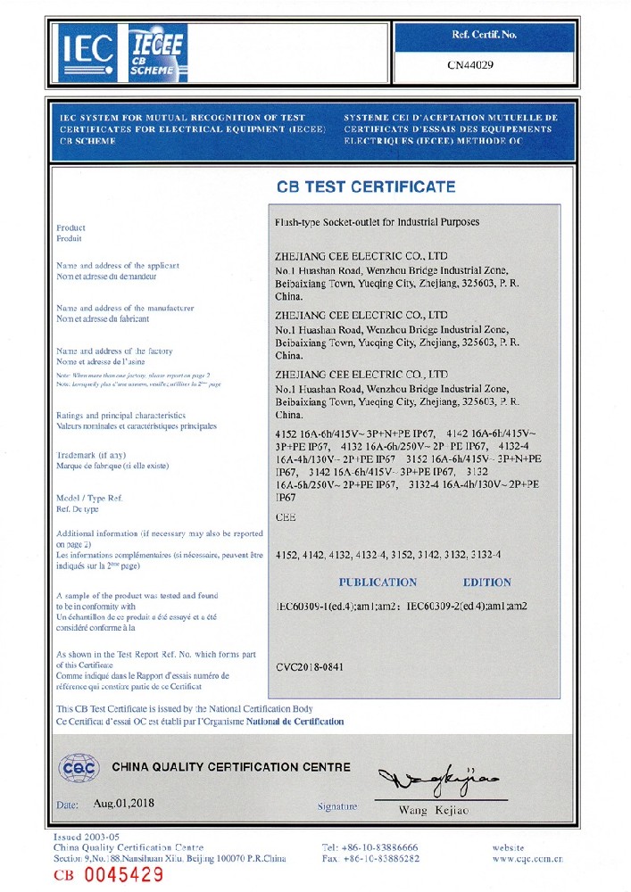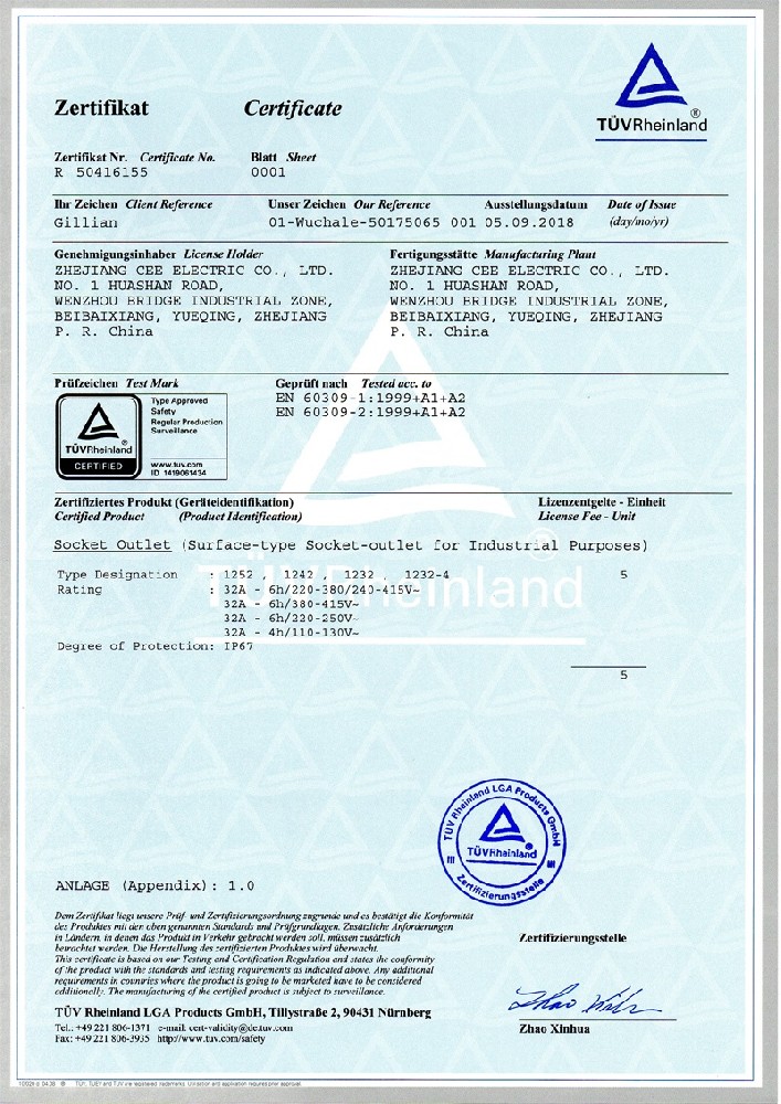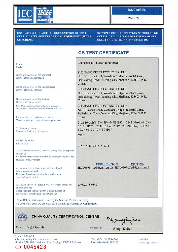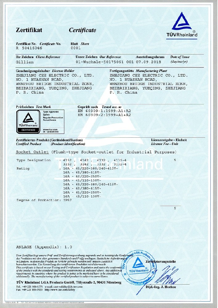 工業插座CE證書