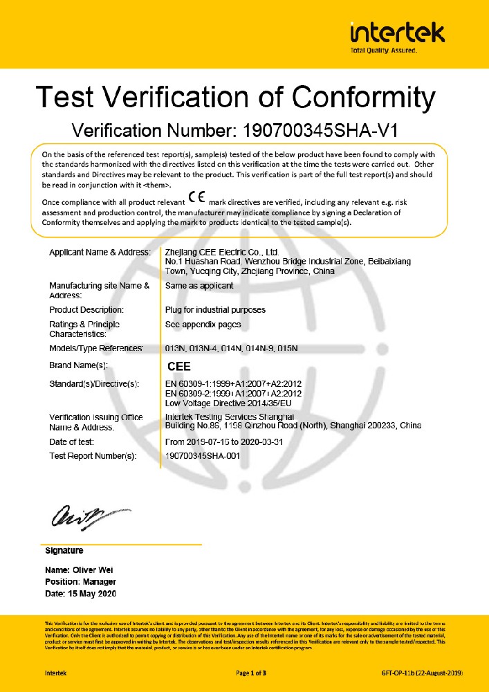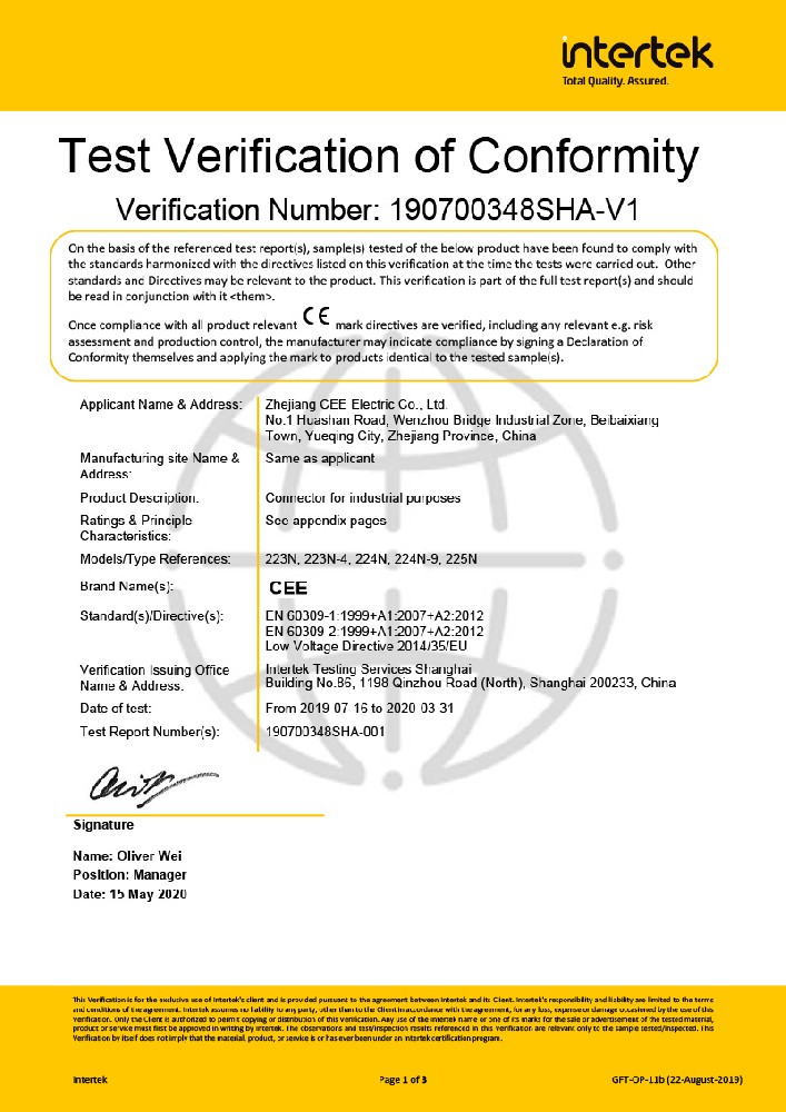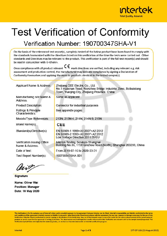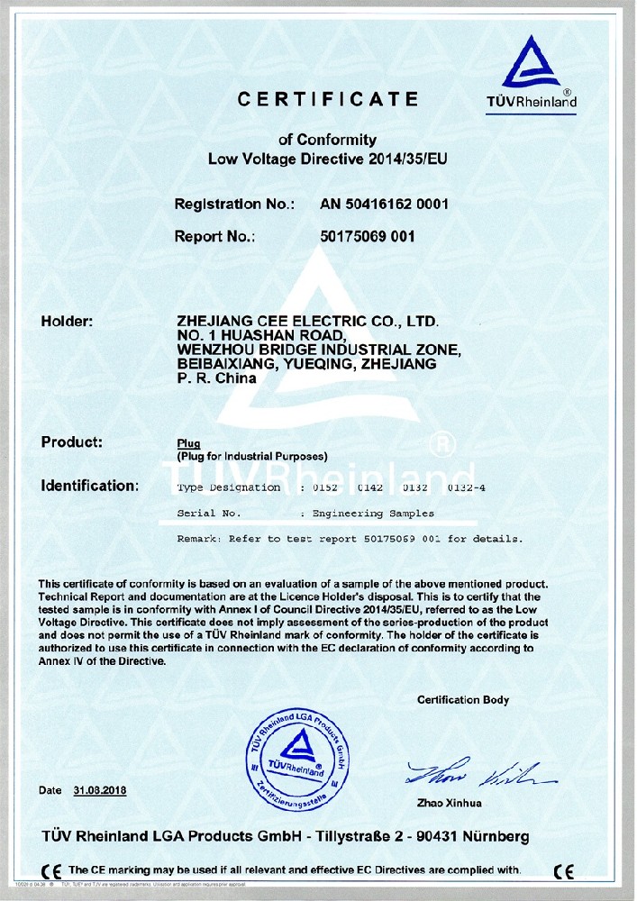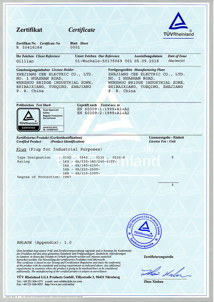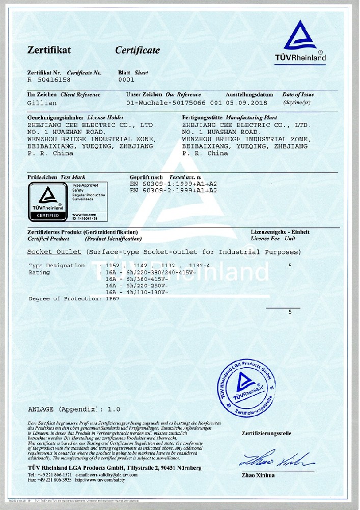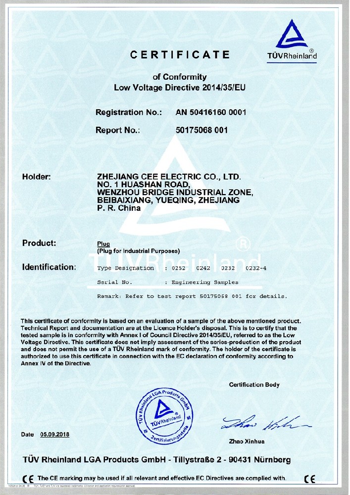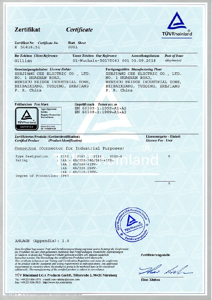 工業插座CE證書